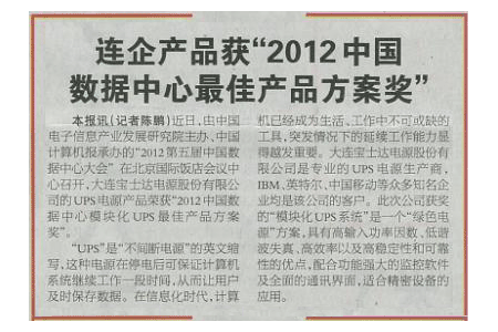 2012年4月7日《大連日報(bào)》對寶士達(dá)公司進(jìn)行了題為《連企產(chǎn)品獲“2012中國數(shù)據(jù)中心最佳產(chǎn)品方案獎”》的報(bào)道。報(bào)道內(nèi)容如下: