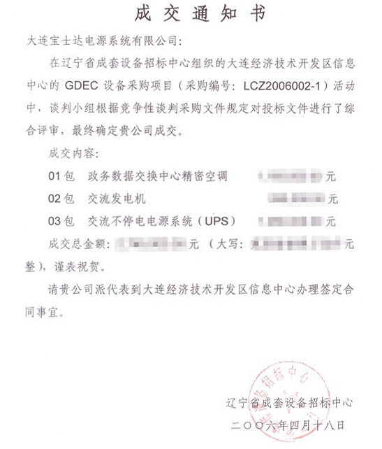 近日,寶士達(dá)公司銷售部門傳來喜訊,在大連市經(jīng)濟技術(shù)開發(fā)區(qū)信息中心的GDEC設(shè)備采購項目中,寶士達(dá)憑借卓越的產(chǎn)品性能和優(yōu)越的電源系統(tǒng)解決方案,獲得用戶和專家評委的一致認(rèn)可,一舉中標(biāo)。
