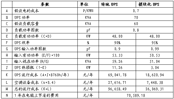 以上是按滿載情況下,單臺(tái)UPS比較得出模塊化UPS每年節(jié)電約7萬元,如果以初建時(shí)負(fù)載率特別低的實(shí)際情況比較,節(jié)電效果將會(huì)更加明顯。