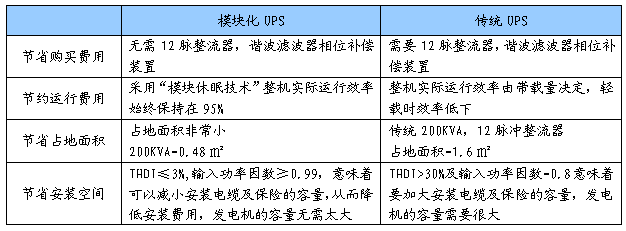 采用模塊化UPS后,電源和空調(diào)的節(jié)能效果可達(dá)25%以上,與傳統(tǒng)機(jī)型相比占用機(jī)房空間和空調(diào)容量有絕對(duì)優(yōu)勢(shì),節(jié)能效果顯著。