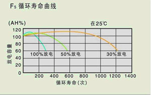 電池采用100%深度放電。其充電電流不超過0.25CA,充電電壓小于2.4-2.5V/單體,且充入的容量為放出容量的120%時(shí),壽命可