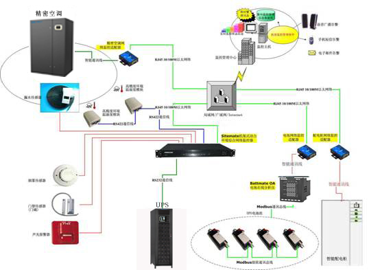 為了滿足信息網(wǎng)絡對IDC機房實現(xiàn)無人或少人值守管理和遠程集中監(jiān)控的需求,對互聯(lián)網(wǎng)數(shù)據(jù)中心來說,除本身應配置對它的所有IT設備進行實時監(jiān)控的網(wǎng)絡管理系統(tǒng)之外,還應建立一套對“非IT設備”的集中監(jiān)控體系,以便對諸如安全系統(tǒng)、UPS、空調(diào)機、配電柜、電池組、發(fā)電機組、漏水警報、消防系統(tǒng)等設備的運行情況進行實時的監(jiān)控和分析,下面就對此套方案的各個系統(tǒng)分別作詳細論述。