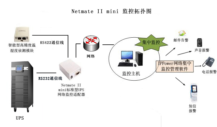 Netmate II mini標(biāo)準(zhǔn)型UPS網(wǎng)絡(luò)監(jiān)控適配器是一款綜合型的智能設(shè)備網(wǎng)絡(luò)集中監(jiān)控產(chǎn)品。產(chǎn)品內(nèi)置多種不同協(xié)議,支持目前國內(nèi)外絕大多數(shù)品牌不同型號的UPS、精密空調(diào)、智能配電柜等,集中在統(tǒng)一的平臺中進(jìn)行監(jiān)控。