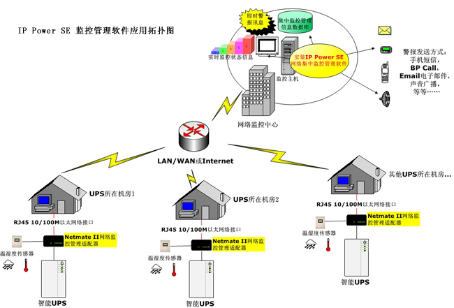 適用于對配備了Netmate II/Netmate II EXT/Netmate SE/Netmate mini/Sitemate的遠程網絡UPS電源、UPS電池組及其周邊環(huán)境狀態(tài)參量的網絡集中監(jiān)控管理。
